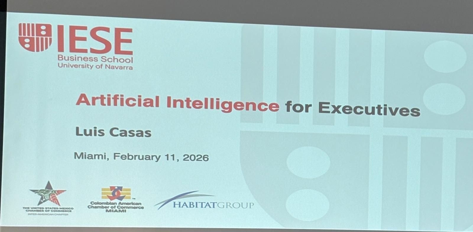 El pasado miércoles 11 de febrero, se llevó a cabo el evento Artificial Intelligence for Executives, un espacio presentado en colaboración con IESE Business School y Habitat Group, dirigido a líderes interesados en comprender cómo la inteligencia artificial (IA) está redefiniendo los modelos de negocio y el mercado laboral.