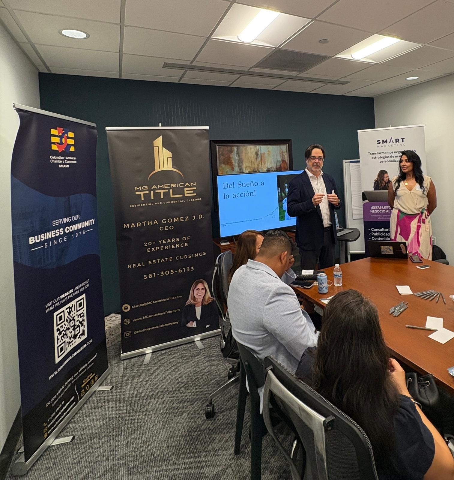 El pasado jueves 22 de mayo, se llevó a cabo un evento de networking corporativo con propósito organizado por la Cámara Colombo Americana Miami (CACC) en la ciudad de Boca Ratón, Florida. La actividad contó con la participación de Smart Marketing Sma LLC y reunió a más de 45 empresarios y emprendedores interesados en fortalecer sus redes de contacto y conocer herramientas prácticas para el crecimiento de sus negocios.
