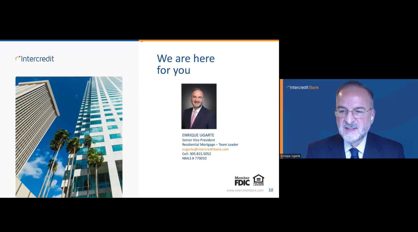 El evento contó con la participación de Enrique Ugarte, Senior Vice President – Residential Mortgage Team Leader en Intercredit Bank N.A., quien presentó una visión completa sobre las opciones de financiamiento disponibles, los requisitos principales para colombianos y las mejores prácticas para estructurar un crédito hipotecario en EE. UU.