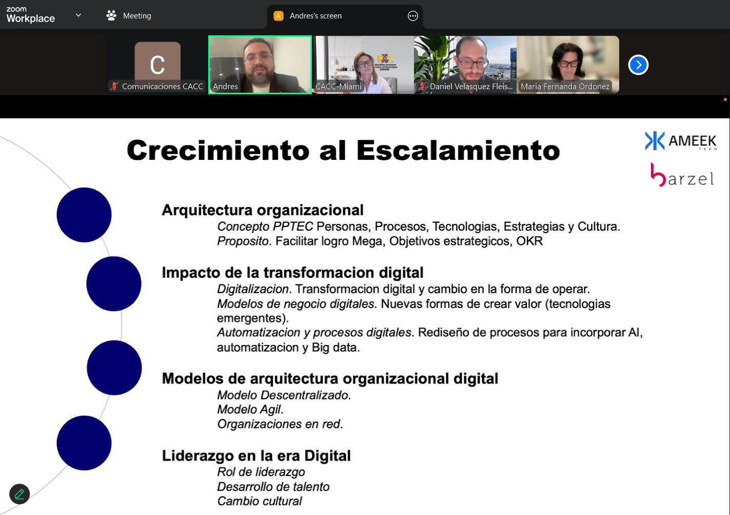 El pasado miércoles 19 de noviembre, se llevó a cabo el evento virtual “Webinar: Del Crecimiento al Escalamiento: Prepárate para Llevar tu Empresa al Siguiente Nivel”, organizado con el propósito de ofrecer a los empresarios una visión clara sobre los procesos necesarios para avanzar hacia modelos de expansión sostenida.