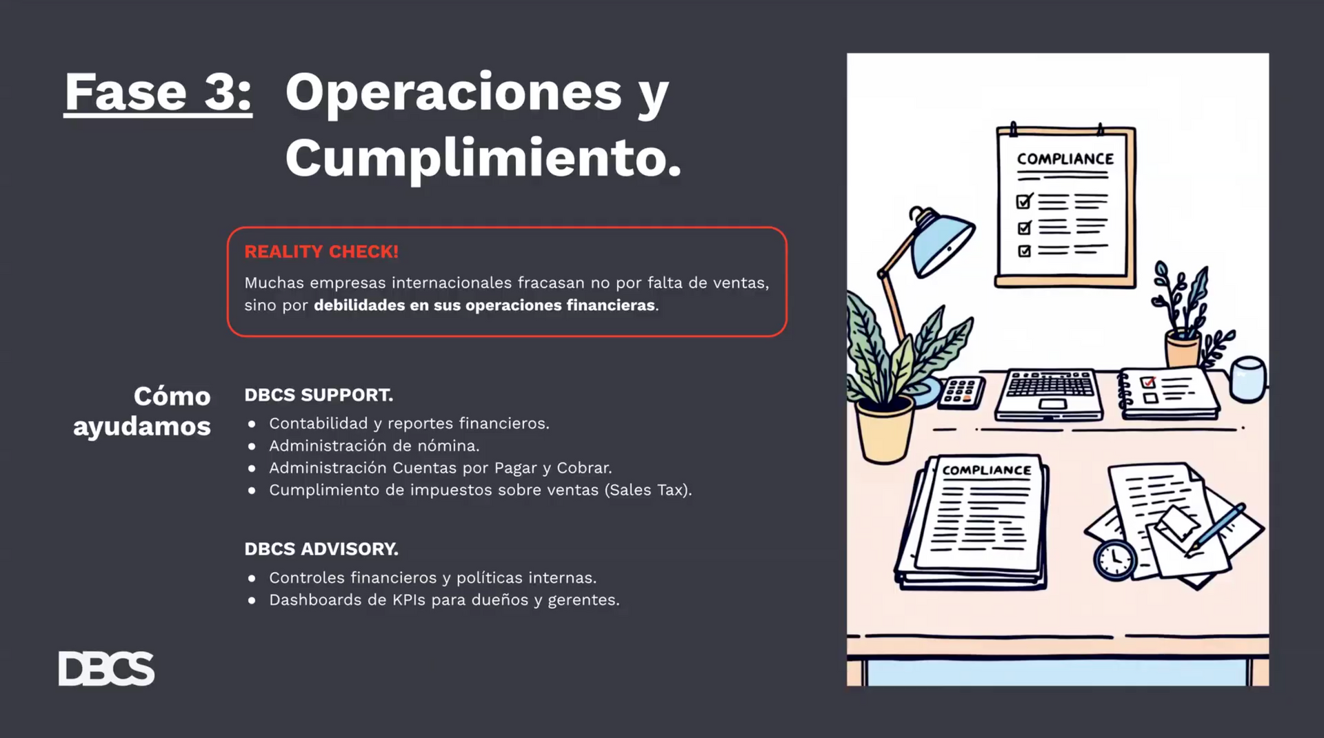 La sesión fue liderada por expertos de la firma DBCS (Do Business Create Solutions), quienes compartieron su conocimiento sobre la gestión financiera y fiscal en el mercado estadounidense.